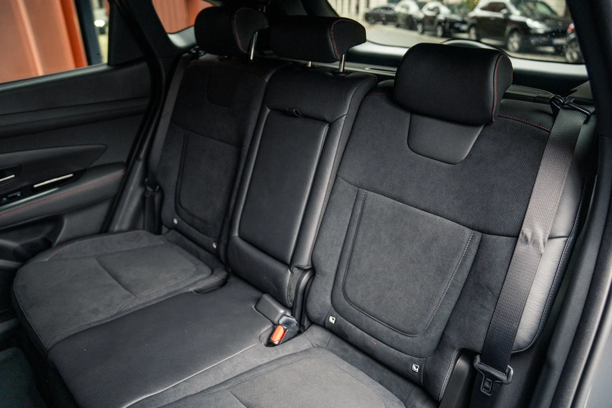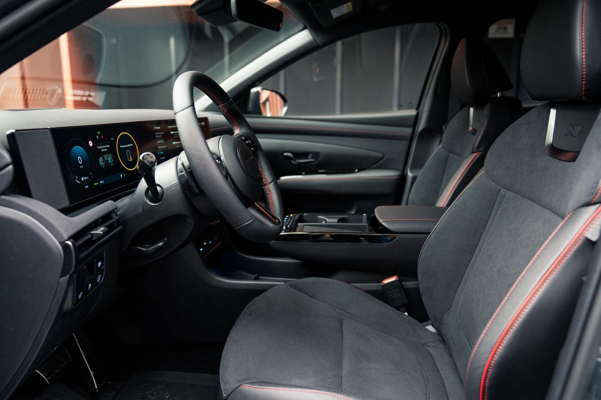 DESIGN Package LED Matrix Headlights (IFS), Two-Tone Bodywork with Abyss Black Roof LUXURY Package Power-adjustable front seats with driver's memory, heated rear seats, ventilated front seats, driver's seatback magazine holder (net), passenger seatback magazine holder (net), Reverse Collision-Avoidance Assist (PCA), Head-Up Display, front, rear, and side parking sensors, 360° Camera System, Blind Spot Monitor (BVM), KRELL Premium Audio System, tweeters, external amplifier, and center speaker. Key features of the new 2025 Tucson N Line: 1. Sporty N Line styling package – bumpers, dark chrome grille, rear spoiler, side moldings. 2. 19-inch N Line alloy wheels – dynamic design, premium appearance. 3. Leather and suede upholstery with red stitching – interior style and comfort. 4. N Line heated sports seats – improved lateral support and comfort on the road. 5. Dual 12.3-inch screen (digital dials + multimedia screen) – modern controls and navigation. 6. Apple CarPlay and Android Auto – wireless smartphone connectivity. 7. Rearview camera + front/rear parking sensors – easier maneuvering. 8. Lane Keeping, Blind Spot, and Highway Driving Assist (HDA) – top-notch safety. 9. LED headlights + LED daytime running lights – excellent visibility and design. 10. N Line heated leather steering wheel + metal pedals – a sporty interior.Included in the price